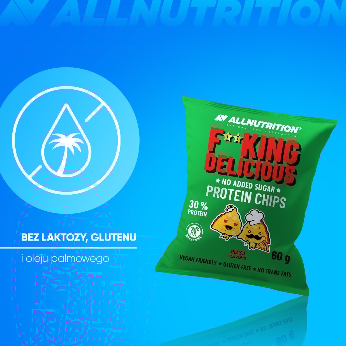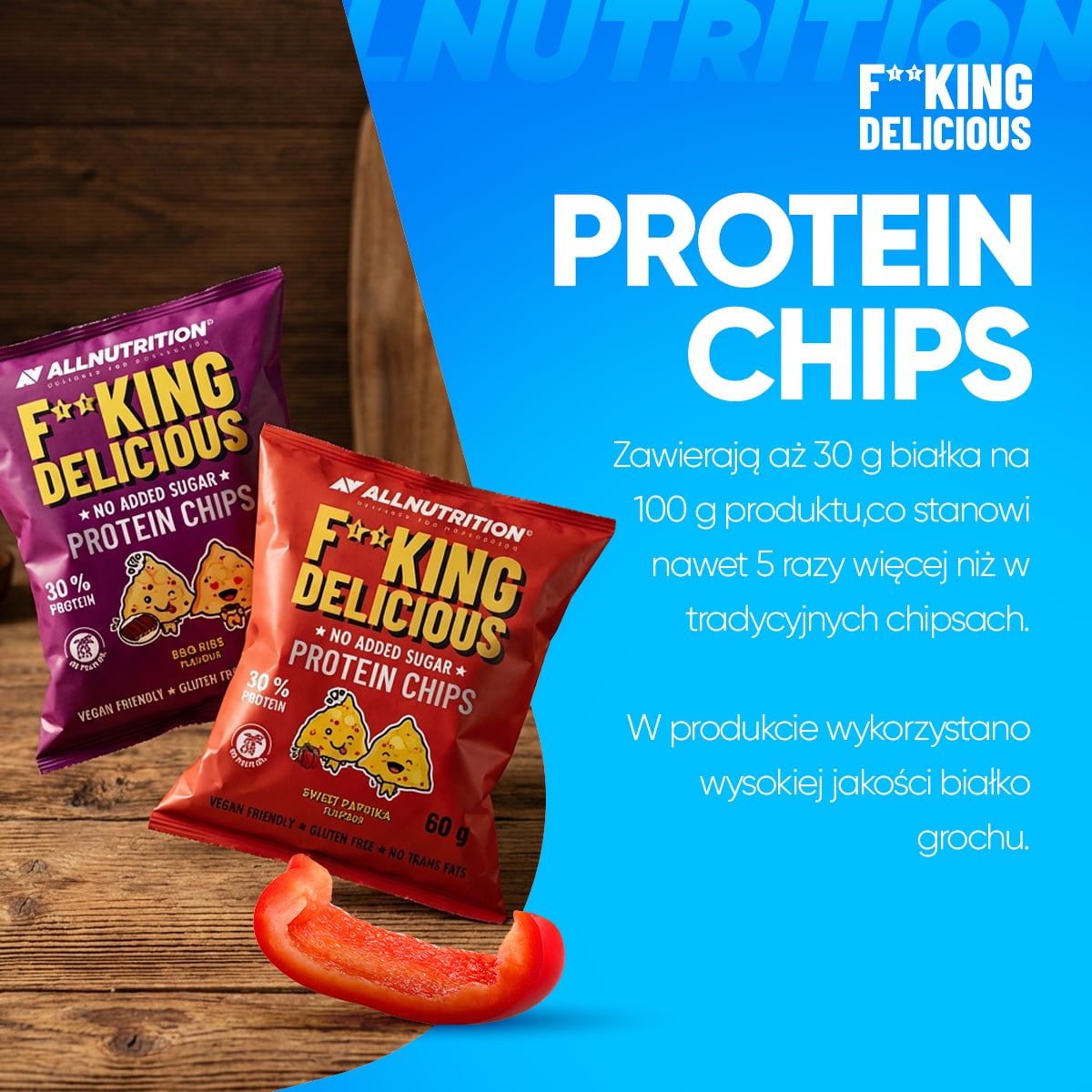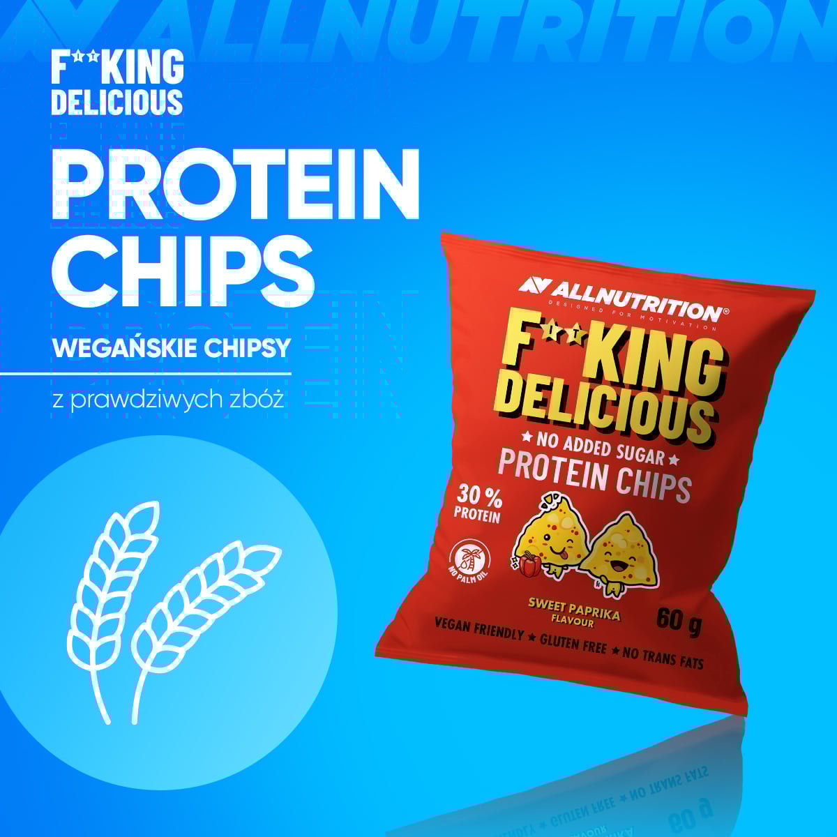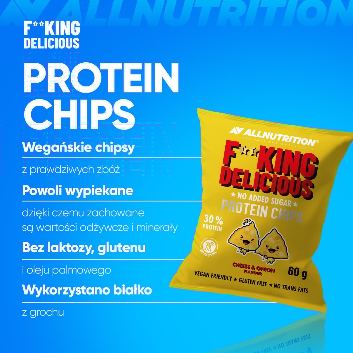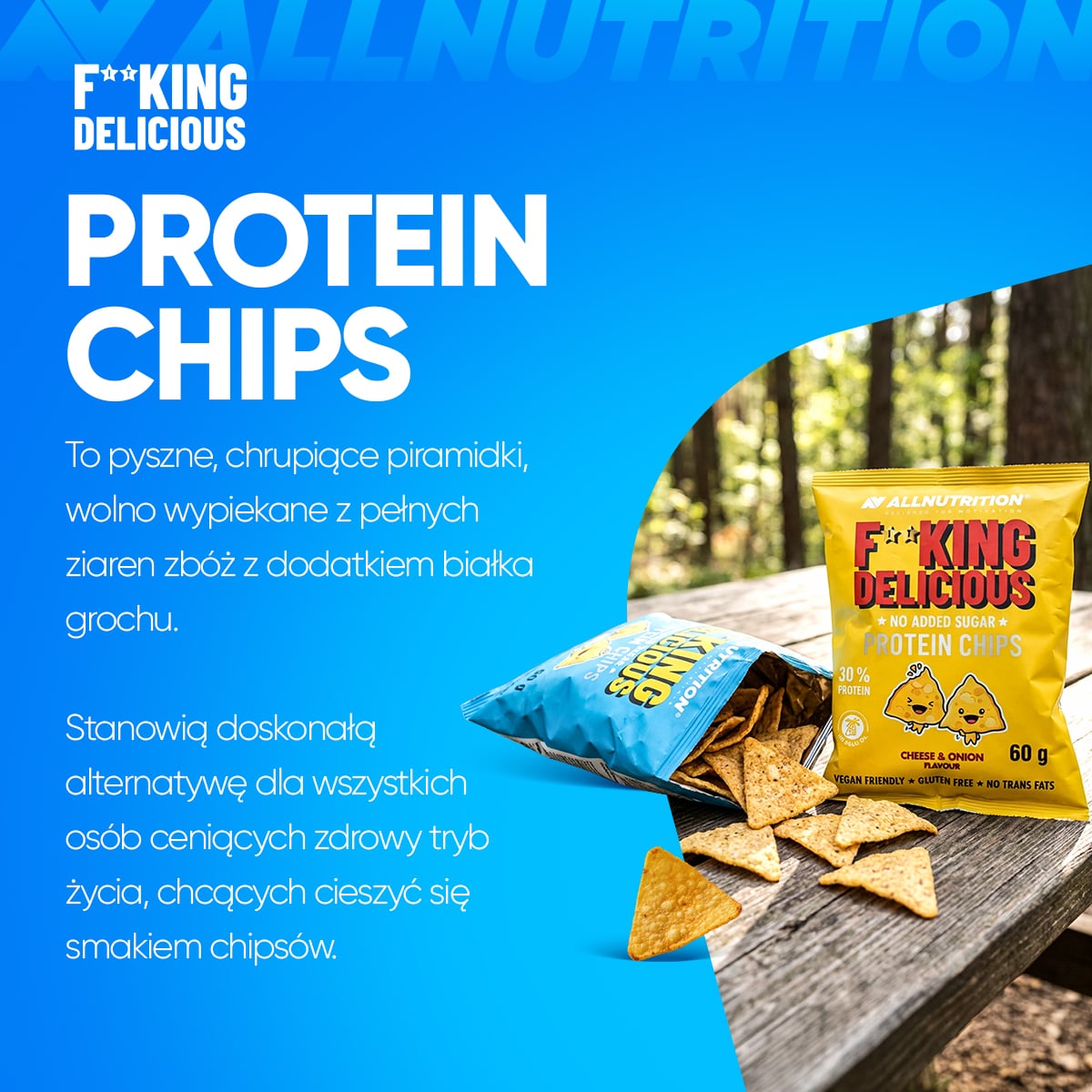 ALLNUTRITION FITKING DELICIOUS PROTEIN CHIPS to pyszne, chrupiące piramidki, wolno wypiekane z pełnych ziaren zbóż z dodatkiem białka grochu.