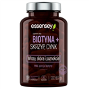 Essensey Biotyna + Skrzyp, Cynk to suplement diety w kapsułkach, zawierający połączenie biotyny, ekstraktu ze skrzypu polnego oraz cynku. Preparat został stworzony z myślą o osobach, które chcą wzbogacić codzienną dietę o składniki mineralne i roślinne. Opakowanie zawiera 90 kapsułek, co wystarcza na dłuższy okres stosowania.