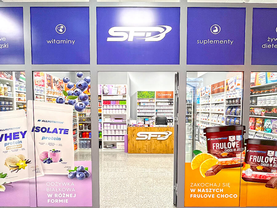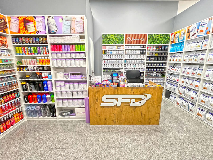 Sklep SFD w Bochni znajduje się w Galerii Handlowej Skarpa. Sklep zaopatrzony jest w szeroki wybór odżywek i suplementów, a także witamin i żywności dietetycznej w dobrych cenach. Przy sklepie dostępny jest bezpłatny parking.