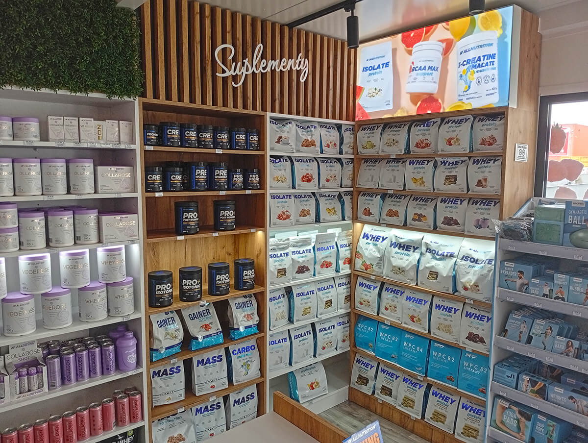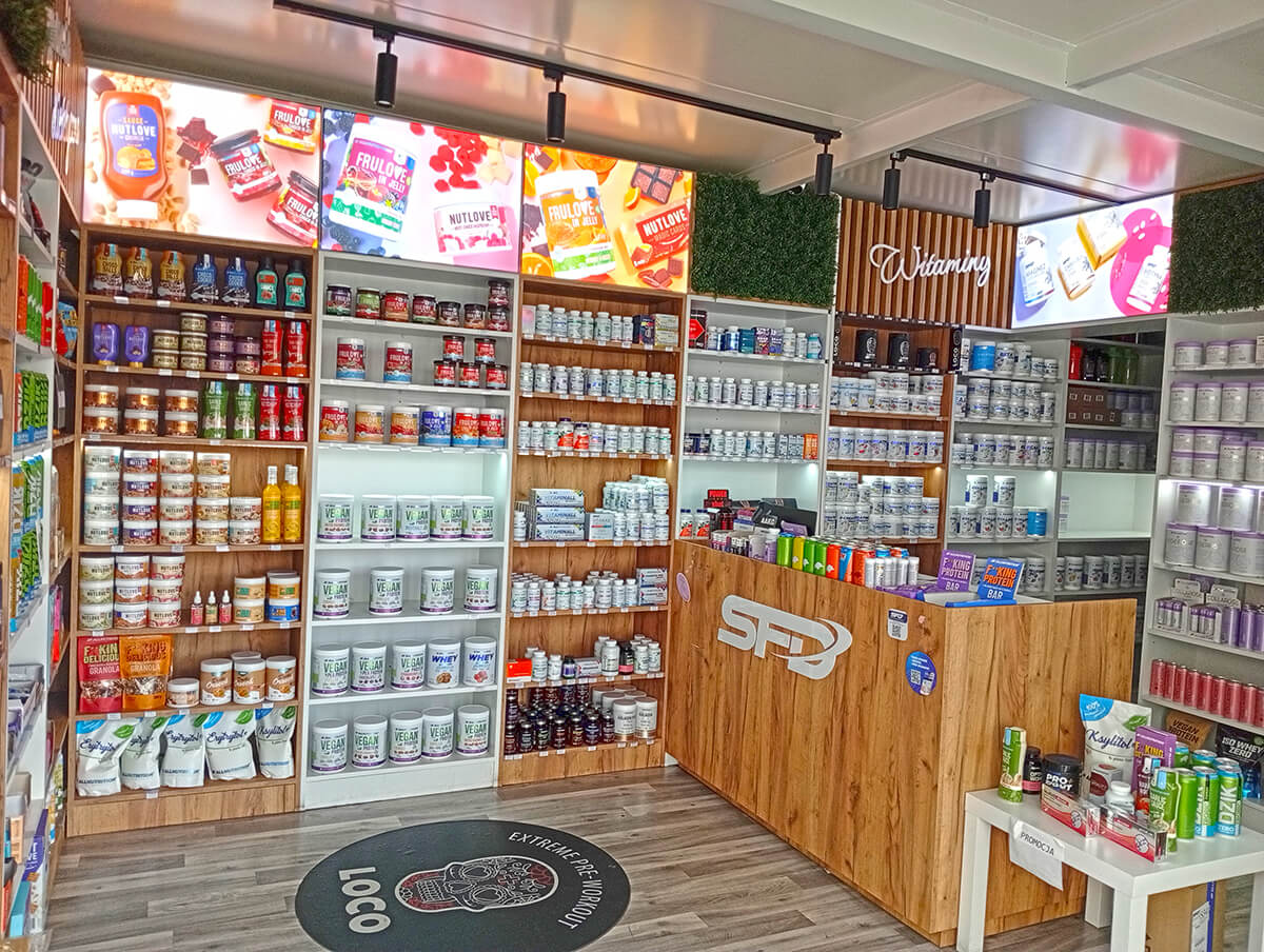 Sklep SFD zaopatrzony jest w szeroki wybór odżywek i suplementów, a także witamin i żywności dietetycznej. Bezpłatny parking CH.