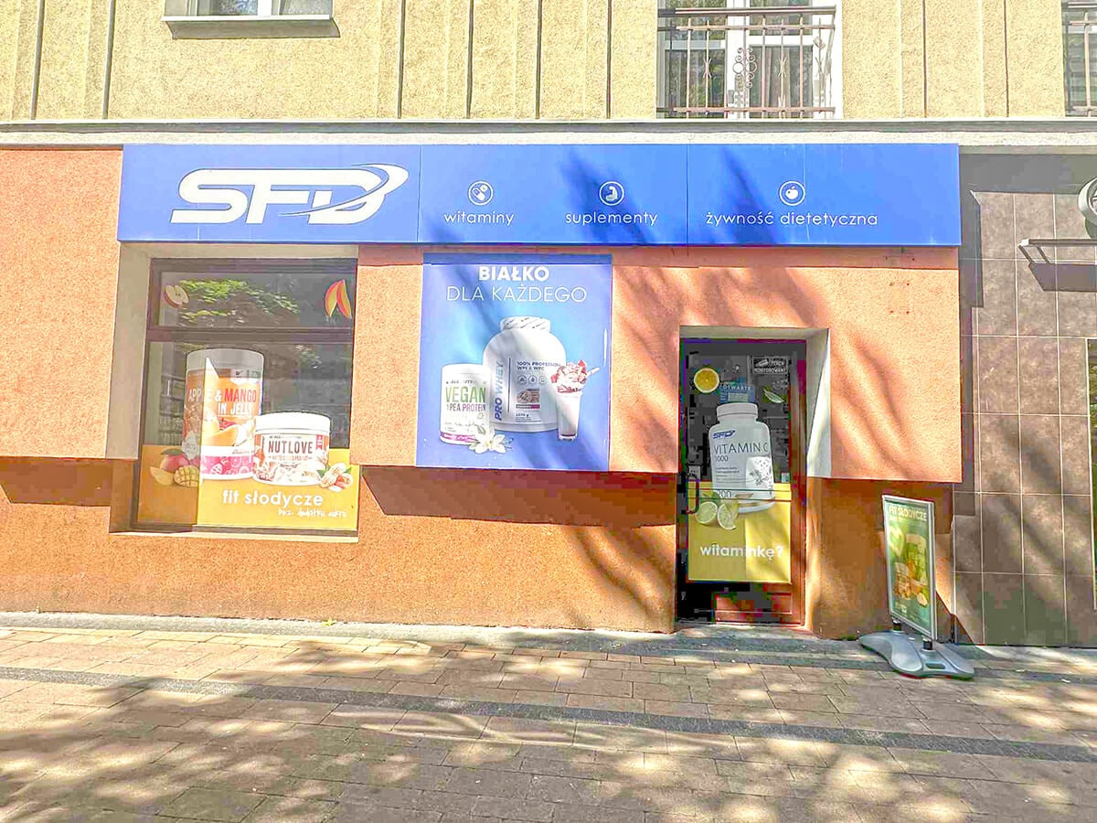 Sklep SFD zaopatrzony jest w szeroki wybór odżywek i suplementów, a także witamin i żywności dietetycznej po cenach internetowych. Parking dostępny przy kinie.