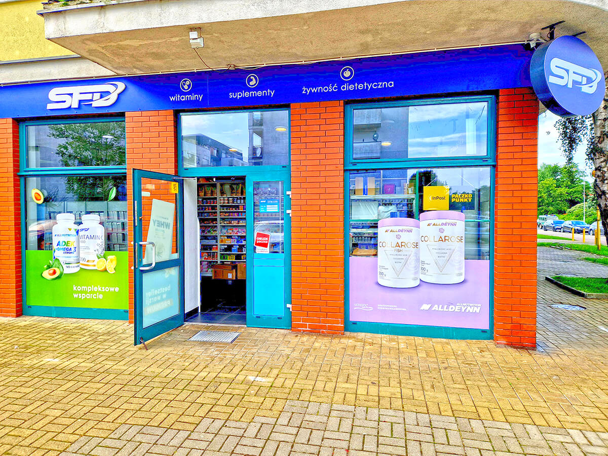 Sklep SFD w Świnoujściu zaopatrzony jest w szeroki wybór odżywek i suplementów, a także witamin i żywności dietetycznej w dobrych cenach. Przy sklepie dostępny jest bezpłatny parking.