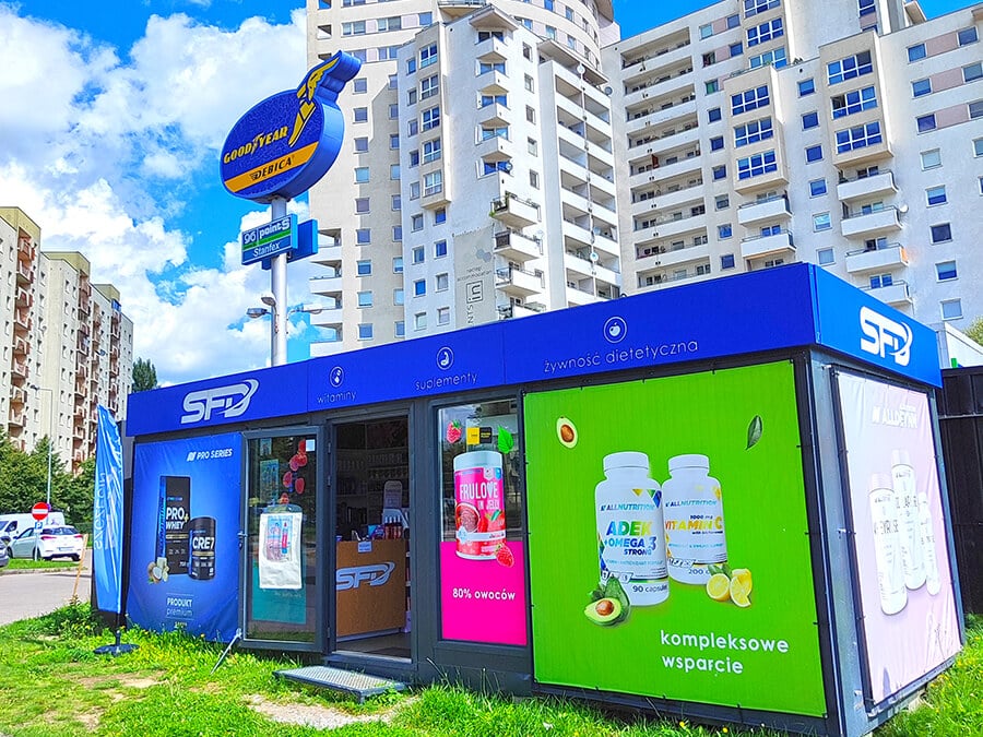 Sklep SFD w Szczecinie mieści się w pawilonie handlowym terenie parkingu. Sklep posiada w ofercie wysokiej jakości produkty w najlepszych cenach: suplementy diety i odżywki dla sportowców, żywność dietetyczną, witaminy i preparaty prozdrowotne. Dzięki fachowemu doradztwu klienci otrzymają produkty dostosowane do indywidualnych potrzeb.Przy sklepie znajduje się parking galerii handlowej.