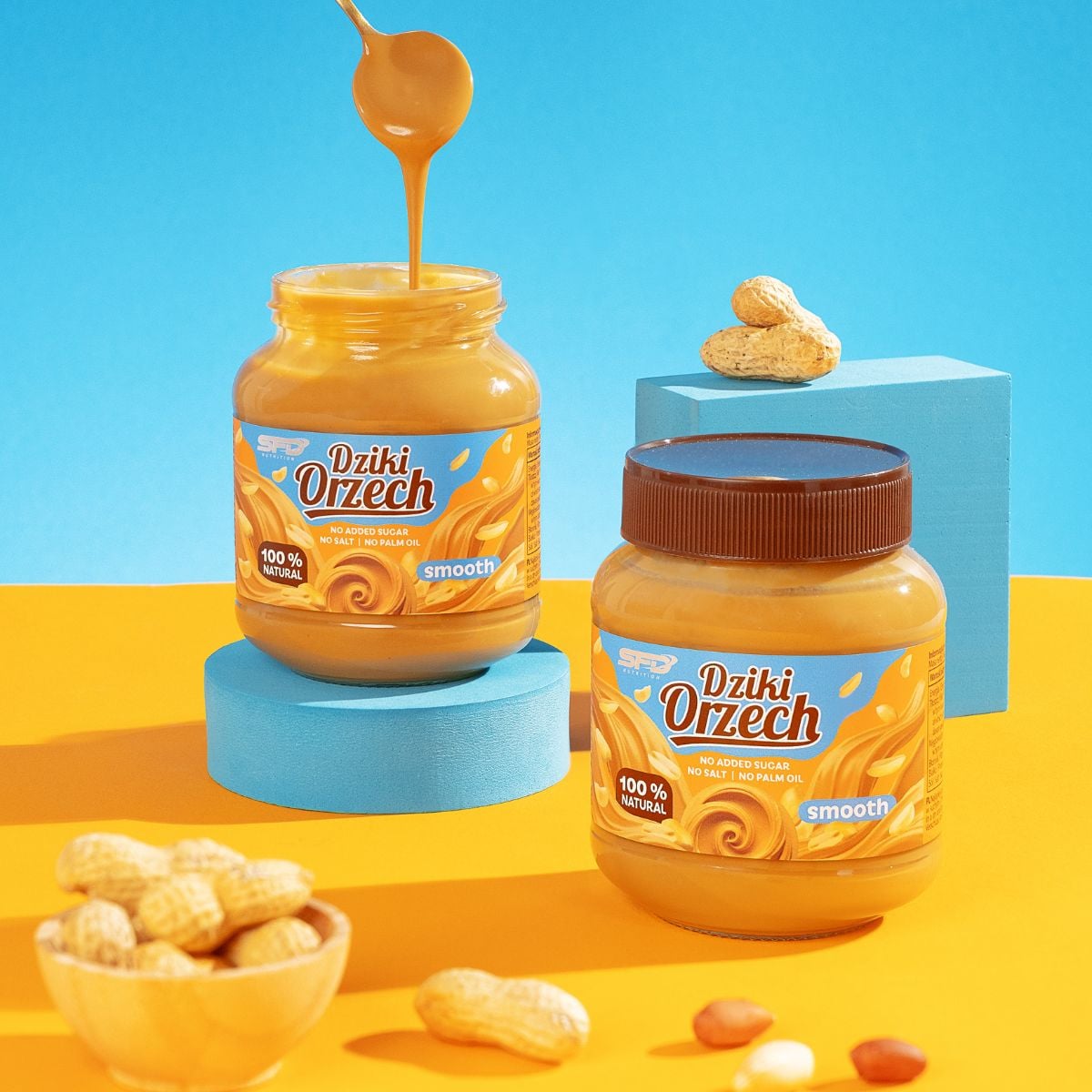 SFD Nutrition Dziki Orzech (1000g) Gładki to naturalne masło orzechowe stworzone wyłącznie z prażonych orzeszków arachidowych. Charakteryzuje się kremową konsystencją, intensywnym smakiem i wysoką wartością odżywczą. Idealne do owsianek, deserów i smoothie — zdecydowanie polecam!