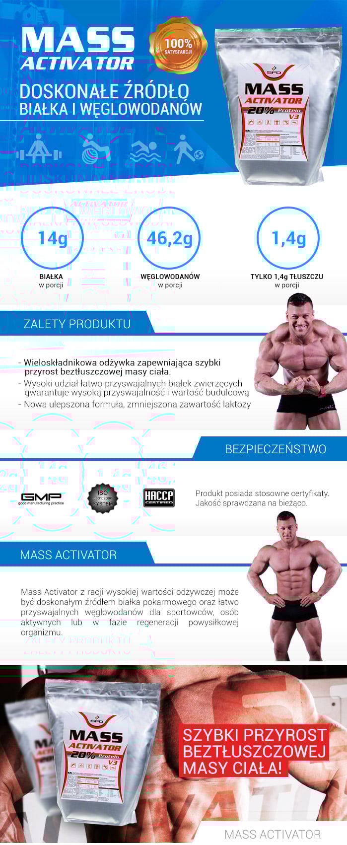 Nie trenuję siłowo (taekwondo / rower), ale przy dużych obciążeniach obserwuję spłukiwanie masy i odżywka szybko rozwiązała ten problem. Próbowałem trzech smaków: banan jest w porządku, truskawka i czekolada są pyszne i podbijają pozytywne skojarzenia z treningiem. Bez problemów miesza się z mlekiem 3.2%. Koktajl 0.4L wypity 30min przed dynamicznym treningiem jest nieodczuwalny w przeciwieństwie do stałych posiłków których muszę unikać min. 2h przed. Porcję zabieram na rower, zmieszana z wodą daje wyraźne doładowanie w trakcie wielogodzinnej trasy.