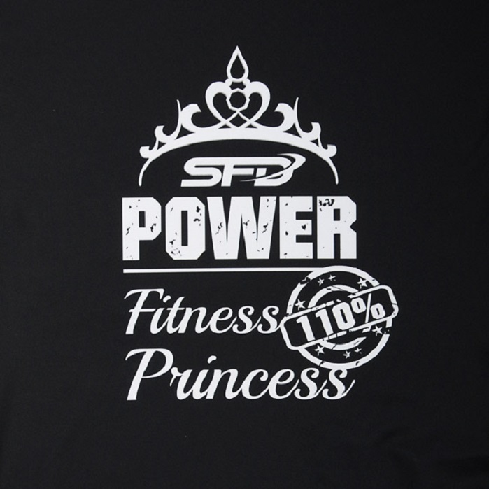 Bluzka z serii fitness princess, skrojona tak aby wysmuklić talię, nadaje się zarówno na trening jak i do codziennego użytku. Z przodu ma charakterystyczne logo SFD POWER "fitness princess" , z tyłu zaś całe plecy są pokryte drobną czarną siatką, z tego względu praktycznie są odsłonięte. Daje to wyjątkowo nietuzinkowy, seksowny efekt.