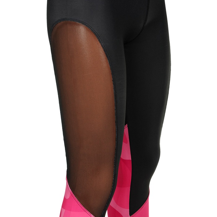 Lekki i oddychający materiał Maksymalny komfort użytkowania Niezastąpiony element stroju do fitnessu! Bardzo modne leginsy uszyte z wysokiej jakości oddychającego materiału i zaprojektowane tak, aby maksymalnie wysmuklić kobiecą sylwetkę oraz dodać jej krągłości tam gdzie trzeba :) Leginsy na zewnętrznej stronie ud mają drobną siateczkę czarnego koloru, z tego powodu łączą w sobie delikatność, sportowe zacięcie i seksapil.
