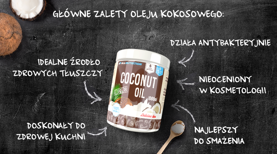 Allnutrition Coconut Oil - nierafinowany, tłoczony na zimno, prosto z indonezyjskich upraw kokosa.