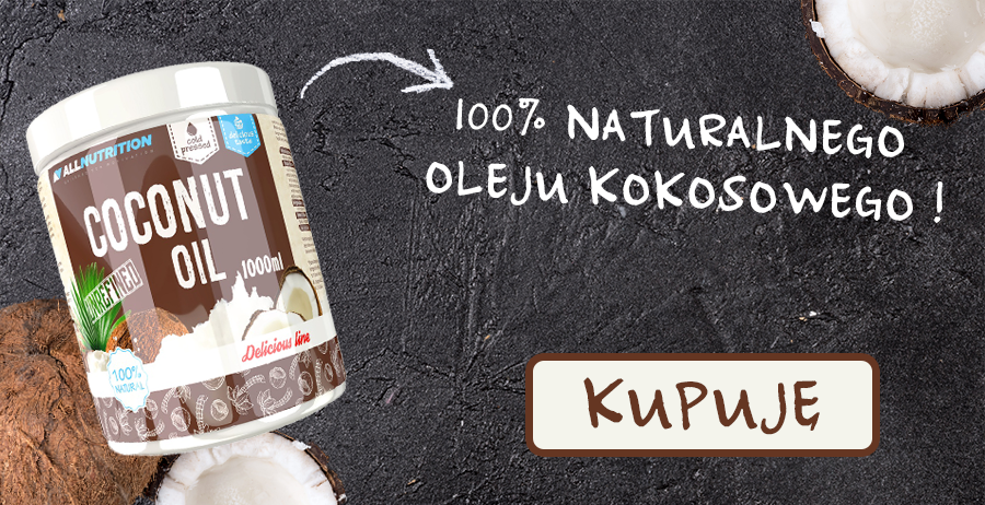 Dla mnie to jedno z najprostszych zastosowań oleju kokosowego. Połącz ulubione owoce z odrobiną jogurtu oraz łyżeczką oleju kokosowego i zmiksuj wszystko przez 30 sekund. Otrzymasz odżywczy, łatwostrawny koktajl, który z powodzeniem może być alternatywą dla normalnego posiłku. Osobiście polecam jako dodatek, 30 gramów izolatu w wybranych smaku.