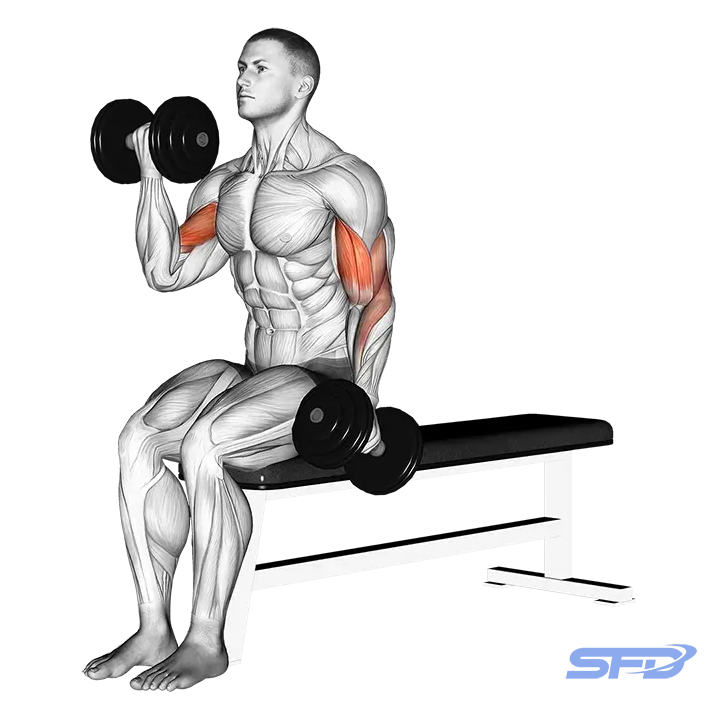 4. Naprzemienne uginanie przedramion z hantlami siedząc